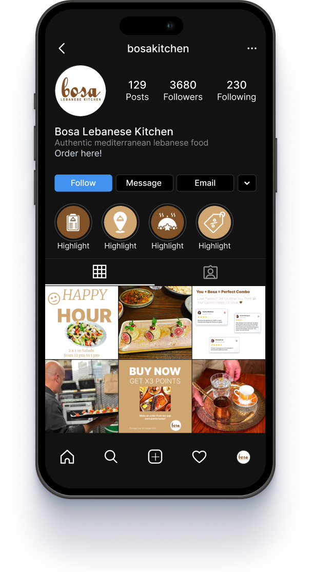 We create high-quality, on-brand content tailored to your restaurant. From visuals to captions, everything is designed to reflect your identity and attract your audience.